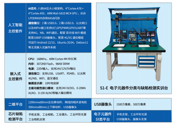 芯力量S1-E 电子元器件分类与缺陷检测实训台
